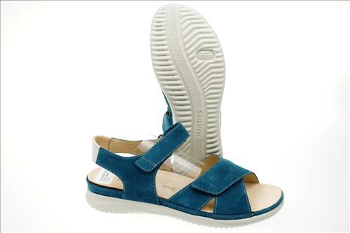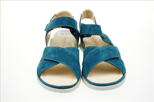Hartjes sandaal in petrol blauw suede met verstelbare sluiting.