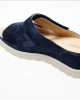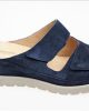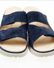 Hartjes slipper in blauw suede met verstelbare sluiting.