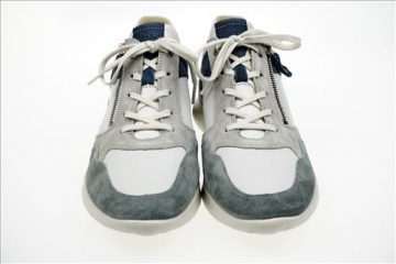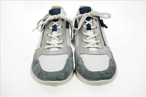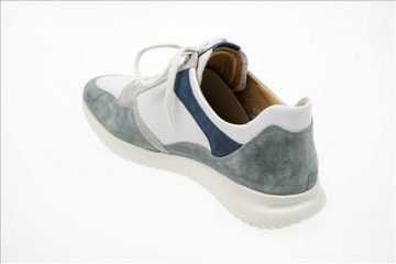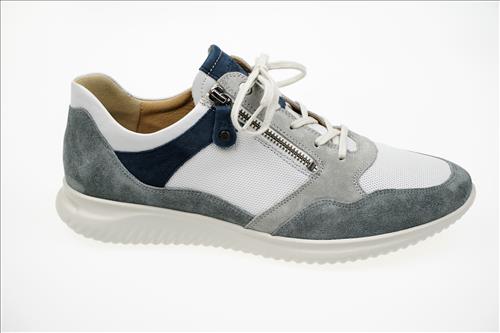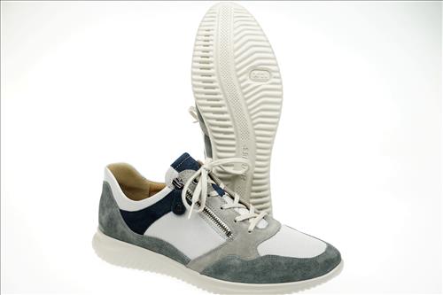 Hartjes Breeze veterschoen in wit/grijs/blauw leer.