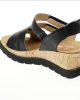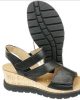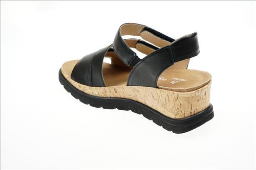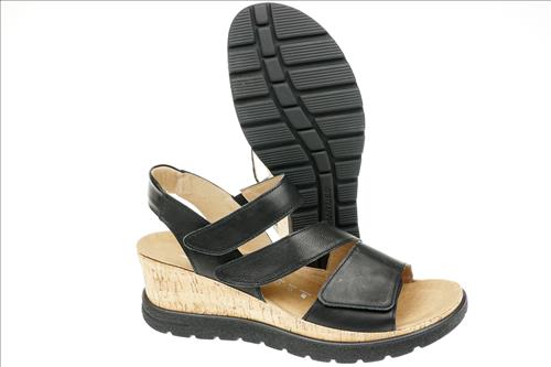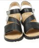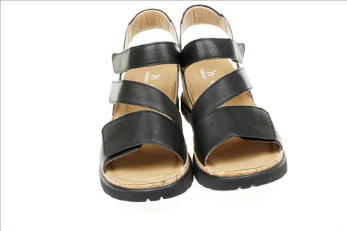 Hartjes sandaal in zwart leer met verstelbare sluiting.
