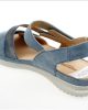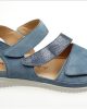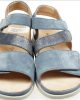 Hartjes sandaal in lichtblauw suede met verstelbare sluiting.