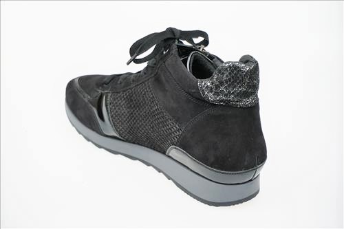 Helioform veterboot in zwart nubuck. Helioform produceert damesschoenen van hoge kwaliteit met een uitstekend draagcomfort. Het doel van Helioform is om voor iedere vrouw perfect passende schoenen te ontwerpen die comfortabel lopen maar er ook mooi uitzien. De damesschoenen zijn daardoor verkrijgbaar in verschillende breedtematen. En alle modellen zijn voorzien van een uitneembaar voetbed waardoor ze eventueel geschikt zijn voor eigen steunzolen. Zo ben je altijd verzekerd van een goede pasvorm.