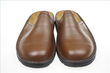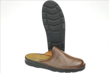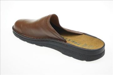 Helix slipper in bruin leer met leren voetbed. Deze slippers zijn op voorraad vanaf maat 41.