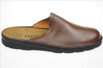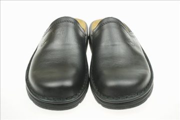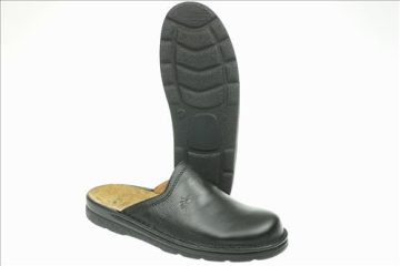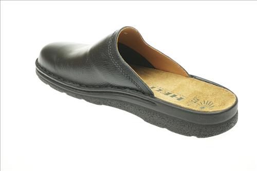 Helix slipper in zwart leer met leren voetbed. Deze slippers zijn op voorraad vanaf maat 41.