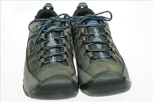 Keen Targhee wandelschoen in grijs/blauw leer. Deze schoenen zijn extra breed en vallen ruim.