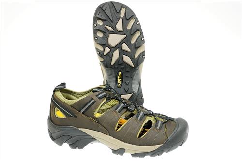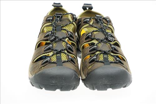 Keen sandaal in bruin/groen leer met uitneembaar voetbed. Deze sandalen zijn waterproof en zijn verkrijgbaar vanaf maat 42.