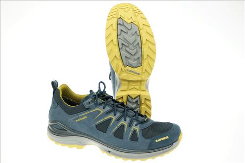 Lowa Innox Evo GTX wandelschoen in blauw/oker. Voor pittige wandelingen, serieuze trektochten, Nordic Walking, spannende expedities, winterse tochten, mountain biking en -beklimming zijn de beste schoenen vereist. En dan kom je al snel uit bij het oeroude Beierse merk Lowa. Die weten precies hoe je een schoen maakt die de elementen kan weerstaan, die grip geeft, water afstoot, voeten en enkels warm houdt en ondersteunt. En tegelijkertijd een heerlijke pasvorm heeft en licht aanvoelt. De trekkingsmodellen van Lowa zijn wereldberoemd vanwege het vakmanschap dat in de schoenen zit. Iedere alpinist, wandelaar of avonturier moet minstens een paar in de kast hebben staan. En zelfs als je niet zo’n natuur freak bent, zijn de schoenen van de merk wat voor jou. Want er is ten slotte geen betere schoen om een citytrip mee te maken. Jou hoor je niet klagen over pijnlijke voeten…