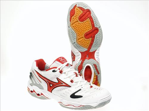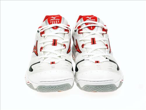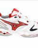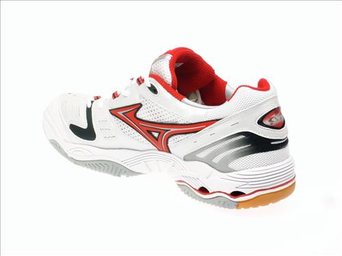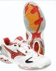 Mizuno indoorschoen met wave demping in wit/rood .Geschikt voor alle zaal sporten.