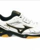 Mizuno indoorschoen in wit/zwart/goud met Wave demping.