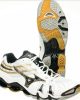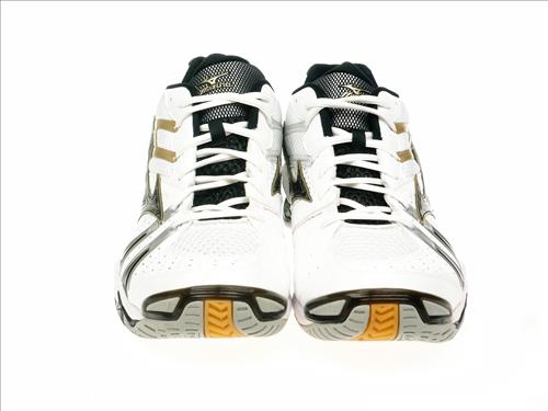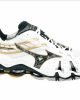 Mizuno indoorschoen in wit/goud/zwart met Wave demping.