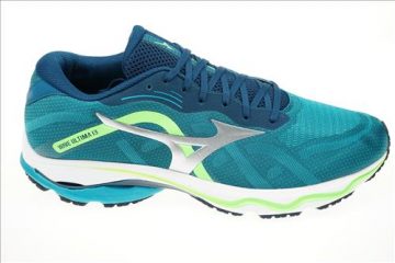 Mizuno Ultimate 13 hardloopschoen in geel/blauw/zwart nylon.