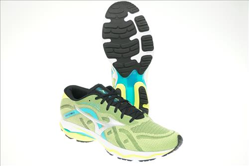 Mizuno Ultimate 13 hardloopschoen in geel/blauw/zwart nylon.