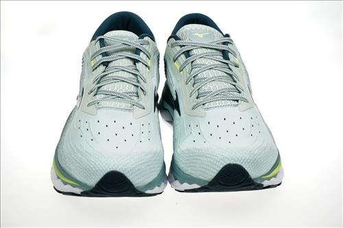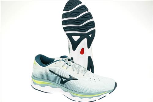 Mizuno Wave Sky 5 hardloopschoen in lichtgrijs/groen nylon.