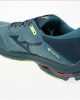 Mizuno Wave Rider GTX hardloopschoen in denimblauw/geel nylon.