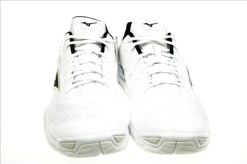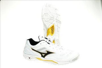 Mizuno Wave Staelth indoorschoen in wit/zwart/geel.