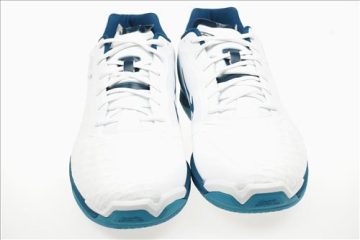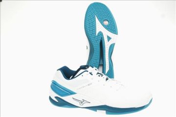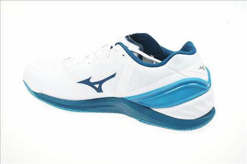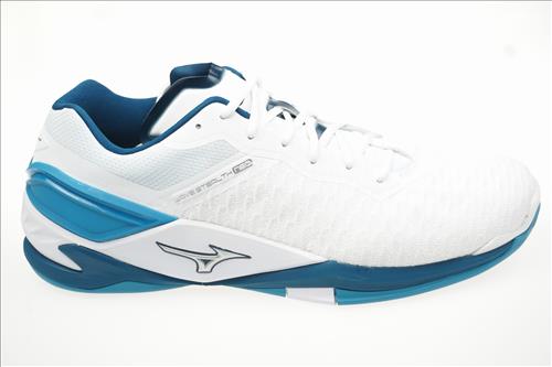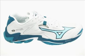 Mizuno Wave Stealth Neo indoorschoen in wit/blauw.