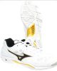 Mizuno Wave Stealth indoorschoen in wit/geel/zwart.
