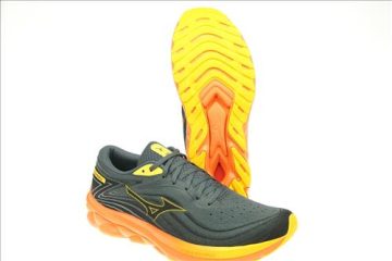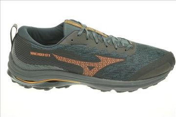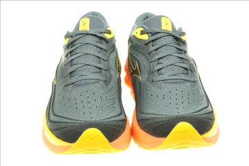 Mizuno Wave Skyrise hardloopschoen in grijs/oranje nylon.