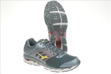 Mizuno Wave Paradox 5 hardloopschoen in grijs/rood nylon.