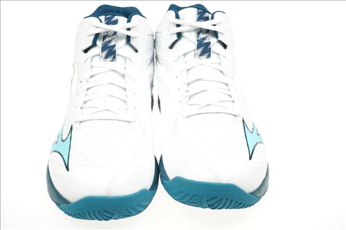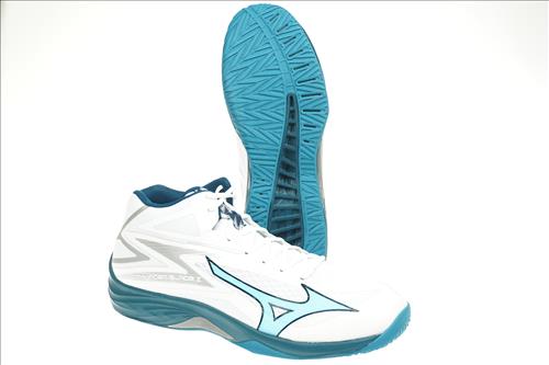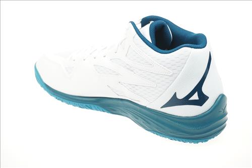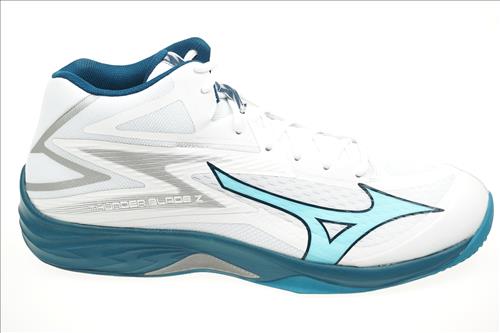 Mizuno Thunderblade Mid indoorschoen in wit/blauw.