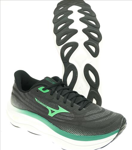 Mizuno Wave Sky 9 runningschoen in grijs/groen combinatie.