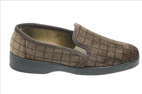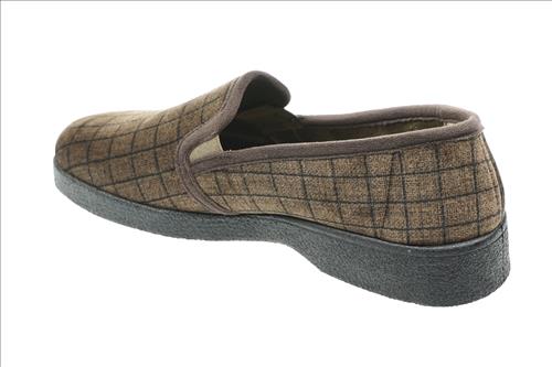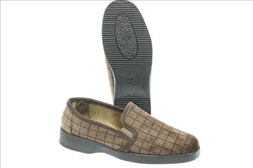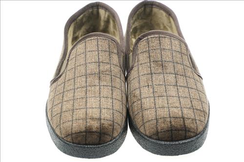 Pantoffel in bruin ruit. Deze pantoffels zijn op voorraad vanaf maat 41.