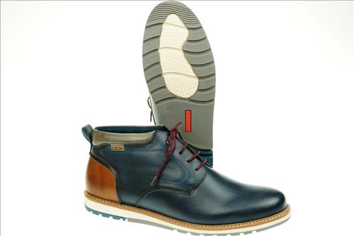 Pikolinos veterboot in blauw/cognac leer. Elke geslaagde dag begint bij Pikolinos herenschoenen. Dit merk staat bekend om zijn fijne pasvorm en fraaie details. Gemakkelijk combineerbare kleuren als taupe, cognac en bruin maken dat je met dit schoeisel perfect uit de voeten kunt.