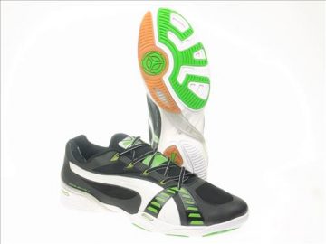 Puma indoorschoen in zwart/groen. Geschikt voor alle zaalsporten.