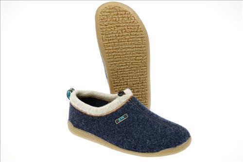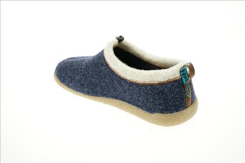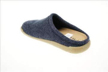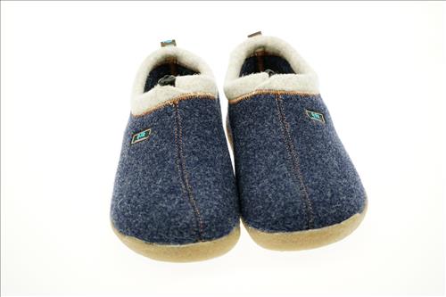 Qfit pantoffel in blauw vilt met uitneembaar voetbed.