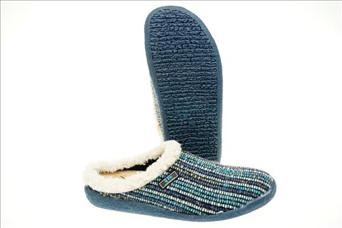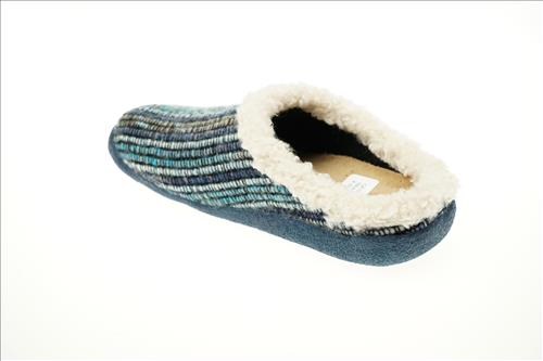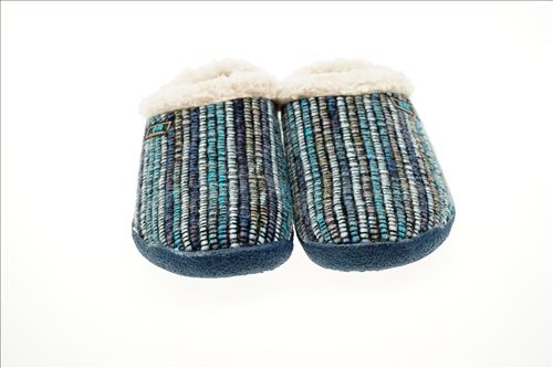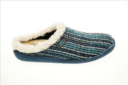 Qfit slipper in blauw multi stof met uitneembaar voetbed.