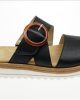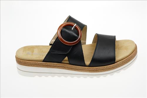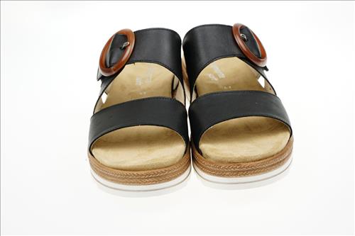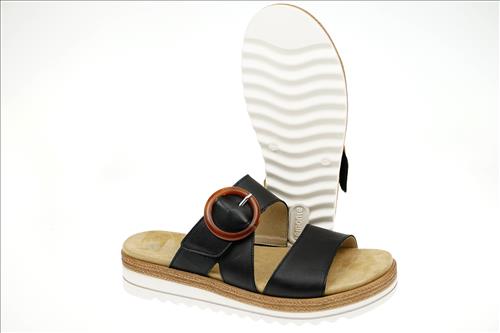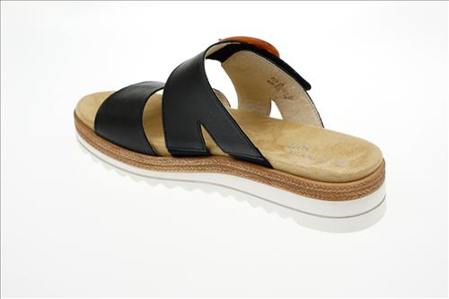 Remonte slipper in zwart leer met verstelbare sluiting.