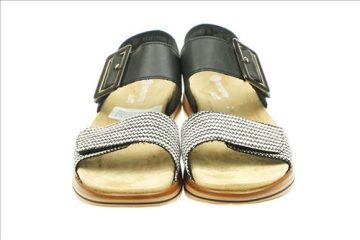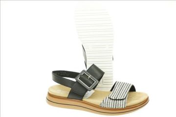 Remonte sandaal in zwart/wit combinatie met verstelbare sluiting.