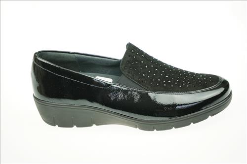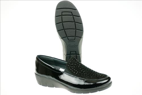 Semler instapper in zwart lak leer. Semler staat voor traditioneel vakmanschap. Sinds 1863 produceert Semler schoenen in Pirmasens, Duitsland. Daar zijn zij in staat schoenen te produceren die niet alleen uitstekend zijn vervaardigd, maar ook voldoen aan de eisen van onze vrouwelijke klanten. In elk seizoen zijn ze met veel passie voor detail op zoek naar het beste materiaal. Vooral het zachte leer en hun ingenieuze functionele textiel zorgen voor een uniek comfort en een waardevolle uitstraling. De schoenen passen zich aan de natuurlijke vorm van uw voet aan en ondersteunen uw voeten tijdens het lopen in de juiste positie. Da’s pas steengoed, toch?