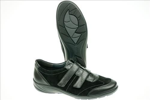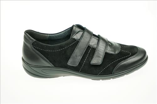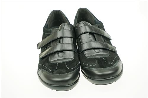Semler klittenbandschoen in zwart leer/nubuck. Semler staat voor traditioneel vakmanschap. Sinds 1863 produceert Semler schoenen in Pirmasens, Duitsland. Daar zijn zij in staat schoenen te produceren die niet alleen uitstekend zijn vervaardigd, maar ook voldoen aan de eisen van onze vrouwelijke klanten. In elk seizoen zijn ze met veel passie voor detail op zoek naar het beste materiaal. Vooral het zachte leer en hun ingenieuze functionele textiel zorgen voor een uniek comfort en een waardevolle uitstraling. De schoenen passen zich aan de natuurlijke vorm van uw voet aan en ondersteunen uw voeten tijdens het lopen in de juiste positie. Da’s pas steengoed, toch?
