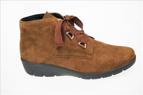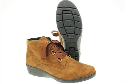 Semler veterboot in cognac nubuck. Semler staat voor traditioneel vakmanschap. Sinds 1863 produceert Semler schoenen in Pirmasens, Duitsland. Daar zijn zij in staat schoenen te produceren die niet alleen uitstekend zijn vervaardigd, maar ook voldoen aan de eisen van onze vrouwelijke klanten. In elk seizoen zijn ze met veel passie voor detail op zoek naar het beste materiaal. Vooral het zachte leer en hun ingenieuze functionele textiel zorgen voor een uniek comfort en een waardevolle uitstraling. De schoenen passen zich aan de natuurlijke vorm van uw voet aan en ondersteunen uw voeten tijdens het lopen in de juiste positie. Da’s pas steengoed, toch?