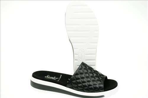 Semler slipper in zwart leer. Semler staat voor traditioneel vakmanschap. Sinds 1863 produceert Semler schoenen in Pirmasens, Duitsland. Daar zijn zij in staat schoenen te produceren die niet alleen uitstekend zijn vervaardigd, maar ook voldoen aan de eisen van onze vrouwelijke klanten. In elk seizoen zijn ze met veel passie voor detail op zoek naar het beste materiaal. Vooral het zachte leer en hun ingenieuze functionele textiel zorgen voor een uniek comfort en een waardevolle uitstraling. De schoenen passen zich aan de natuurlijke vorm van uw voet aan en ondersteunen uw voeten tijdens het lopen in de juiste positie. Da’s pas steengoed, toch?