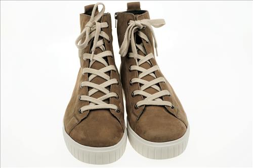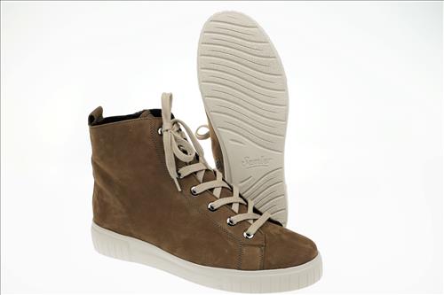 Semler veterboot in taupe nubuck. Semler staat voor traditioneel vakmanschap. Sinds 1863 produceert Semler schoenen in Pirmasens, Duitsland. Daar zijn zij in staat schoenen te produceren die niet alleen uitstekend zijn vervaardigd, maar ook voldoen aan de eisen van onze vrouwelijke klanten. In elk seizoen zijn ze met veel passie voor detail op zoek naar het beste materiaal. Vooral het zachte leer en hun ingenieuze functionele textiel zorgen voor een uniek comfort en een waardevolle uitstraling. De schoenen passen zich aan de natuurlijke vorm van uw voet aan en ondersteunen uw voeten tijdens het lopen in de juiste positie. Da’s pas steengoed, toch?