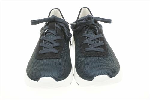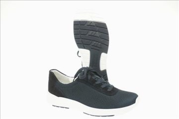 Semler veterschoen in blauw nylon met badstof voering. Ideaal voor blote voeten.