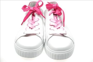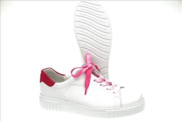 Semler sneaker in wit/fuxia leer met badstof voering.
