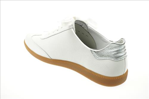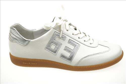 Semler sneaker in wit/zilver leer. Semler staat voor traditioneel vakmanschap. Sinds 1863 produceert Semler schoenen in Pirmasens, Duitsland. Daar zijn zij in staat schoenen te produceren die niet alleen uitstekend zijn vervaardigd, maar ook voldoen aan de eisen van onze vrouwelijke klanten. In elk seizoen zijn ze met veel passie voor detail op zoek naar het beste materiaal. Vooral het zachte leer en hun ingenieuze functionele textiel zorgen voor een uniek comfort en een waardevolle uitstraling. De schoenen passen zich aan de natuurlijke vorm van uw voet aan en ondersteunen uw voeten tijdens het lopen in de juiste positie. Da’s pas steengoed, toch?