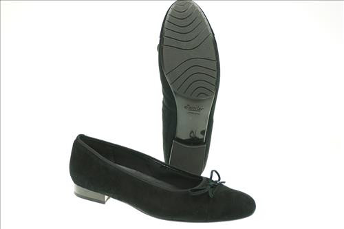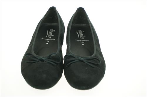 Semler ballerina in zwart suede met strik. Semler staat voor traditioneel vakmanschap. Sinds 1863 produceert Semler schoenen in Pirmasens, Duitsland. Daar zijn zij in staat schoenen te produceren die niet alleen uitstekend zijn vervaardigd, maar ook voldoen aan de eisen van onze vrouwelijke klanten. In elk seizoen zijn ze met veel passie voor detail op zoek naar het beste materiaal. Vooral het zachte leer en hun ingenieuze functionele textiel zorgen voor een uniek comfort en een waardevolle uitstraling. De schoenen passen zich aan de natuurlijke vorm van uw voet aan en ondersteunen uw voeten tijdens het lopen in de juiste positie. Da’s pas steengoed, toch?