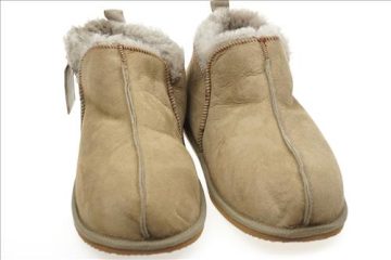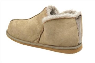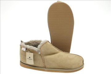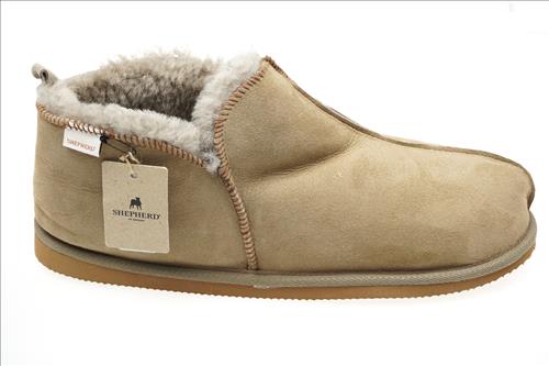 Shepherd of Sweden pantoffel in taupe suede met wollen voering.