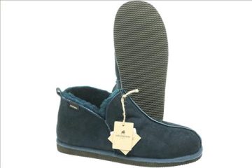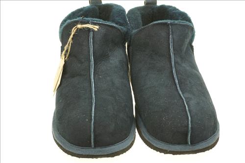 Shepherd of Sweden pantoffel in blauw suede met wollen voering.