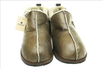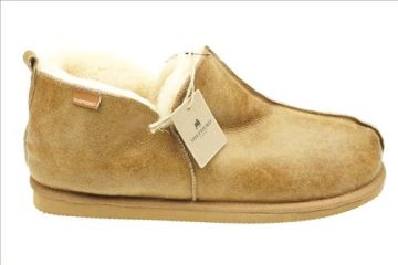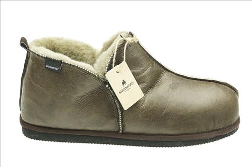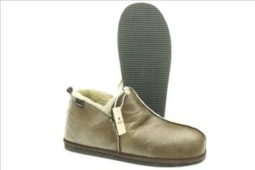 Shepherd of Sweden pantoffel in bruin leer met wollen voering.