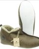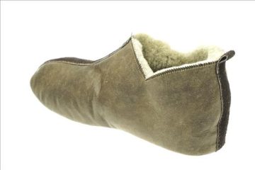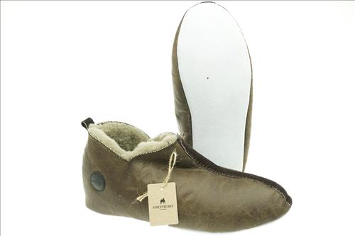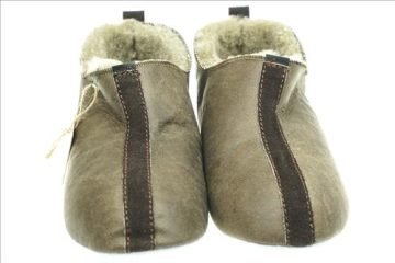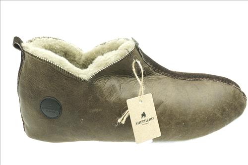 Shepherd of Sweden pantoffel in donker taupe leer met wollen voering op een suede zool.