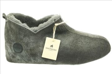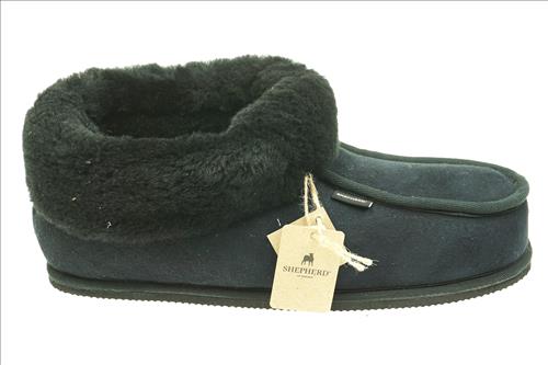 Shepherd of Sweden pantoffel in zwart suede met wollen voering.