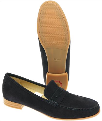 Sioux moccassin in blauw suede. Deze schoenen zijn op voorraad vanaf maat 37.