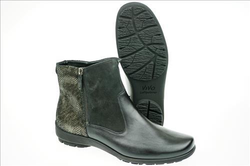 Solidus laarsje in zwart/brons leer met uitneembaar voetbed en warme voering in wijdte H. Solidus comfortschoenen zijn gemaakt van zachte, comfortabele materialen die zorgen voor een perfecte drukverdeling. Ook zijn er elastische materialen in de schoenen van Solidus verwerkt, zodat knellende schoenen verleden tijd zijn. Het voetbed van alle Solidus schoenen is daarnaast anatomisch gevormd en uitneembaar, zodat ze ook geschikt zijn om uw eigen steunzolen in te plaatsen. Naast comfort, staat een trendy look bij Solidus hoog in het vaandel. Solidus schoenen zijn dan ook zowel comfortabel als trendy.
