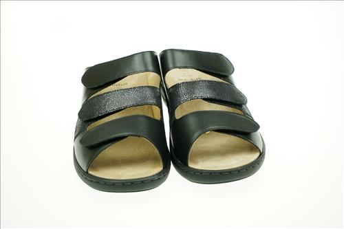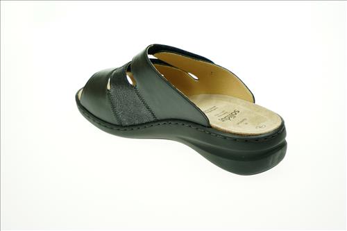 Solidus slipper in zwart leer met verstelbare sluiting. Solidus comfortschoenen zijn gemaakt van zachte, comfortabele materialen die zorgen voor een perfecte drukverdeling. Ook zijn er elastische materialen in de schoenen van Solidus verwerkt, zodat knellende schoenen verleden tijd zijn. Het voetbed van alle Solidus schoenen is daarnaast anatomisch gevormd en uitneembaar, zodat ze ook geschikt zijn om uw eigen steunzolen in te plaatsen. Naast comfort, staat een trendy look bij Solidus hoog in het vaandel. Solidus schoenen zijn dan ook zowel comfortabel als trendy.