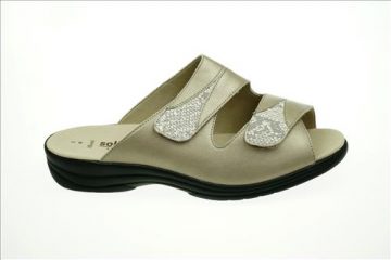 Solidus slipper in zilver leer met verstelbare sluiting. Solidus comfortschoenen zijn gemaakt van zachte, comfortabele materialen die zorgen voor een perfecte drukverdeling. Ook zijn er elastische materialen in de schoenen van Solidus verwerkt, zodat knellende schoenen verleden tijd zijn. Het voetbed van alle Solidus schoenen is daarnaast anatomisch gevormd en uitneembaar, zodat ze ook geschikt zijn om uw eigen steunzolen in te plaatsen. Naast comfort, staat een trendy look bij Solidus hoog in het vaandel. Solidus schoenen zijn dan ook zowel comfortabel als trendy.